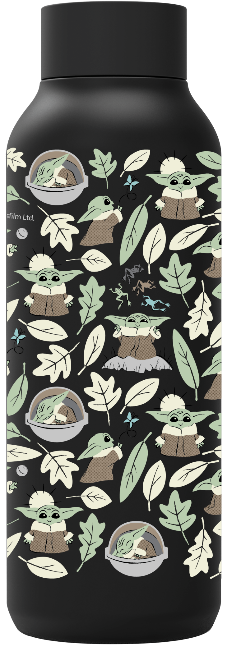 QUOKKA BOTELLA TERMO ACERO INOXIDABLE SOLID JET BLACK 510 ML THE MANDALORIAN GROGU LEAVES