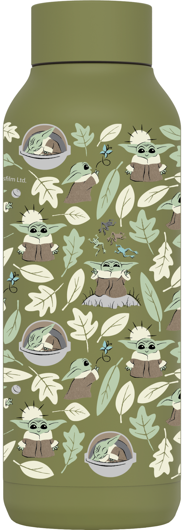 QUOKKA BOTELLA TERMO ACERO INOXIDABLE SOLID OLIVE GREEN 510 ML THE MANDALORIAN GROGU LEAVES