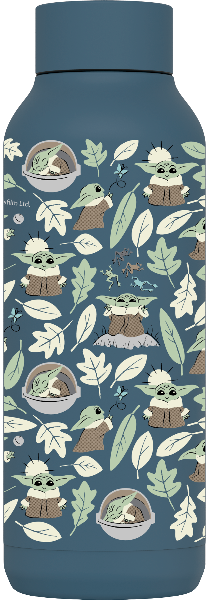 QUOKKA BOTELLA TERMO ACERO INOXIDABLE SOLID STONE BLUE 510 ML THE MANDALORIAN GROGU LEAVES