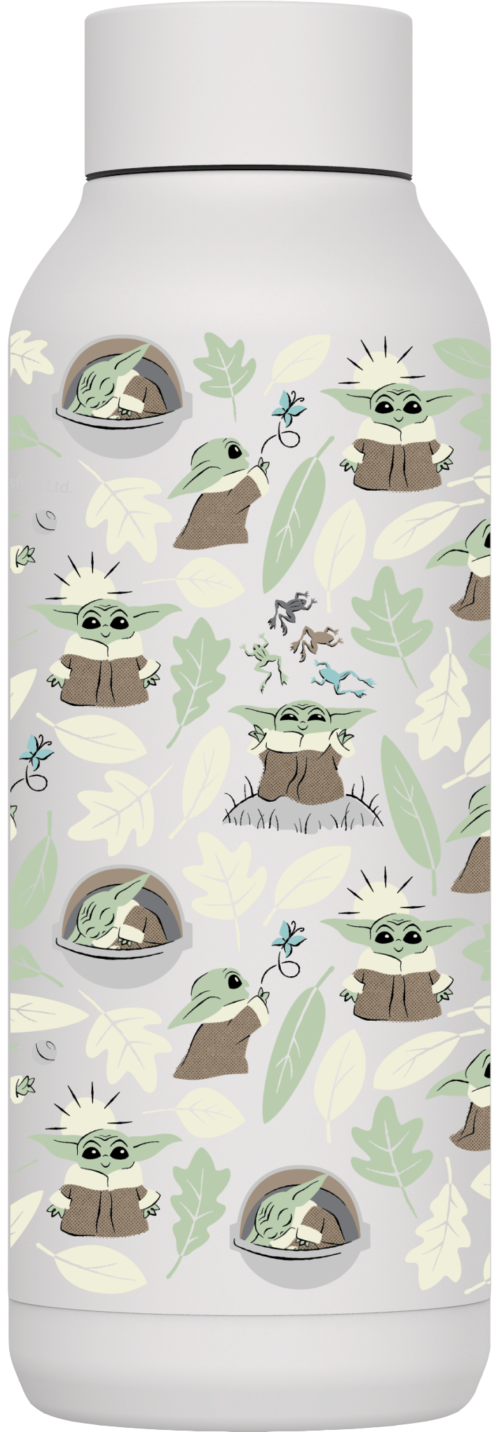 QUOKKA BOTELLA TERMO ACERO INOXIDABLE SOLID WHITE 510 ML THE MANDALORIAN GROGU LEAVES