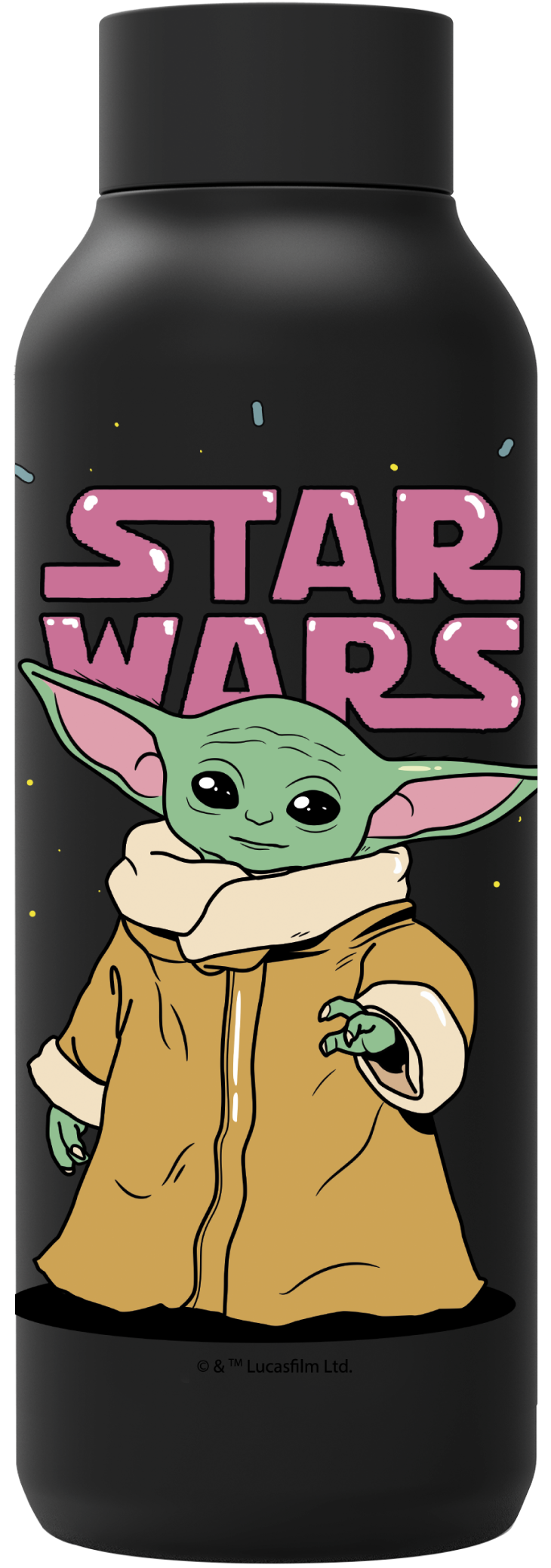 QUOKKA BOTELLA TERMO ACERO INOXIDABLE SOLID JET BLACK 510 ML THE MANDALORIAN GROGU NEON