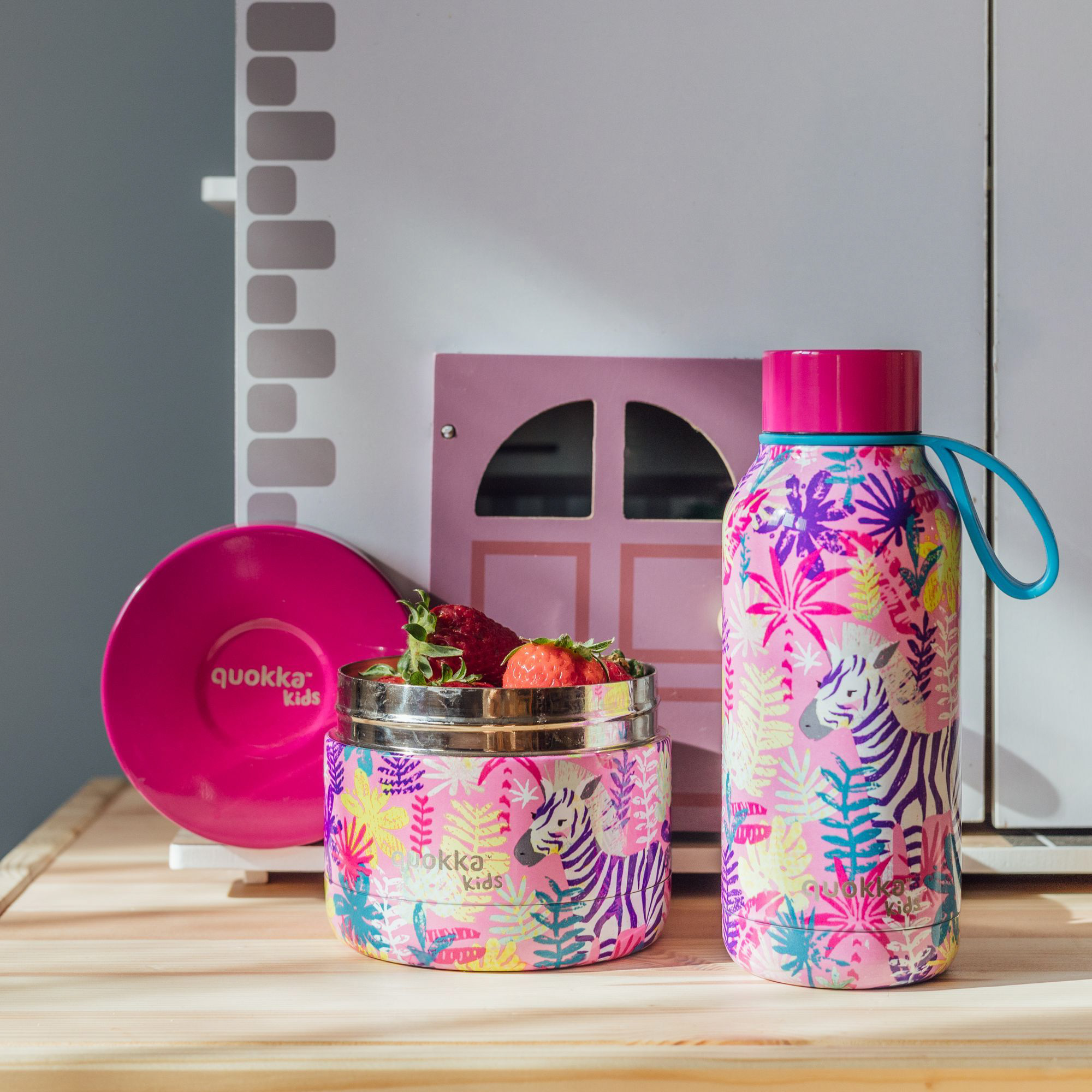QUOKKA LOTE KIDS BOTELLA TERMO SOLID CON COLGADOR 330 ML Y RECIPIENTE COMIDA ZEBRAS (40099 + 40147)