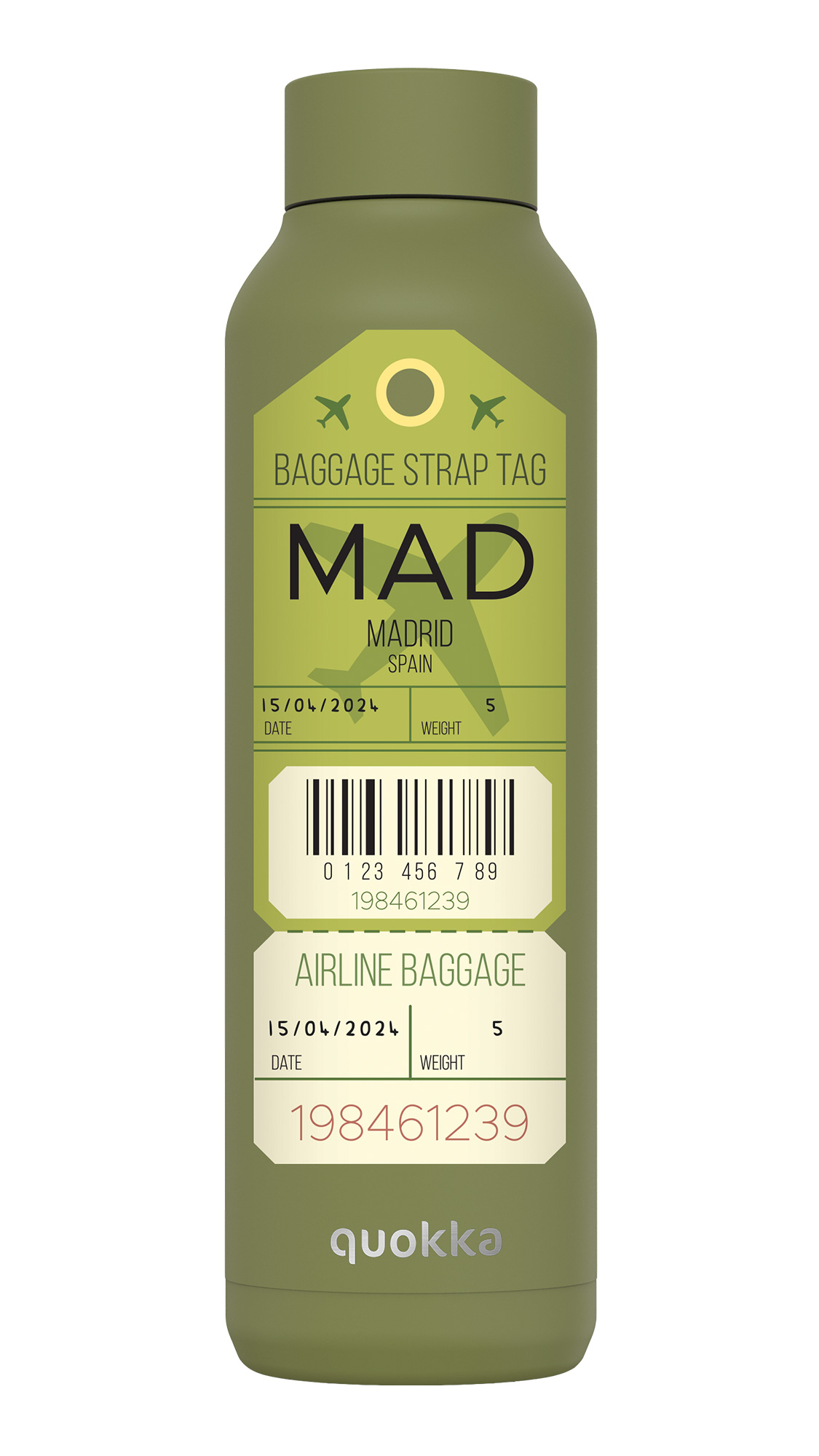 QUOKKA BOTELLA TERMO ACERO INOXIDABLE SOLID OLIVE GREEN 630 ML MADRID LABEL CUSTOM