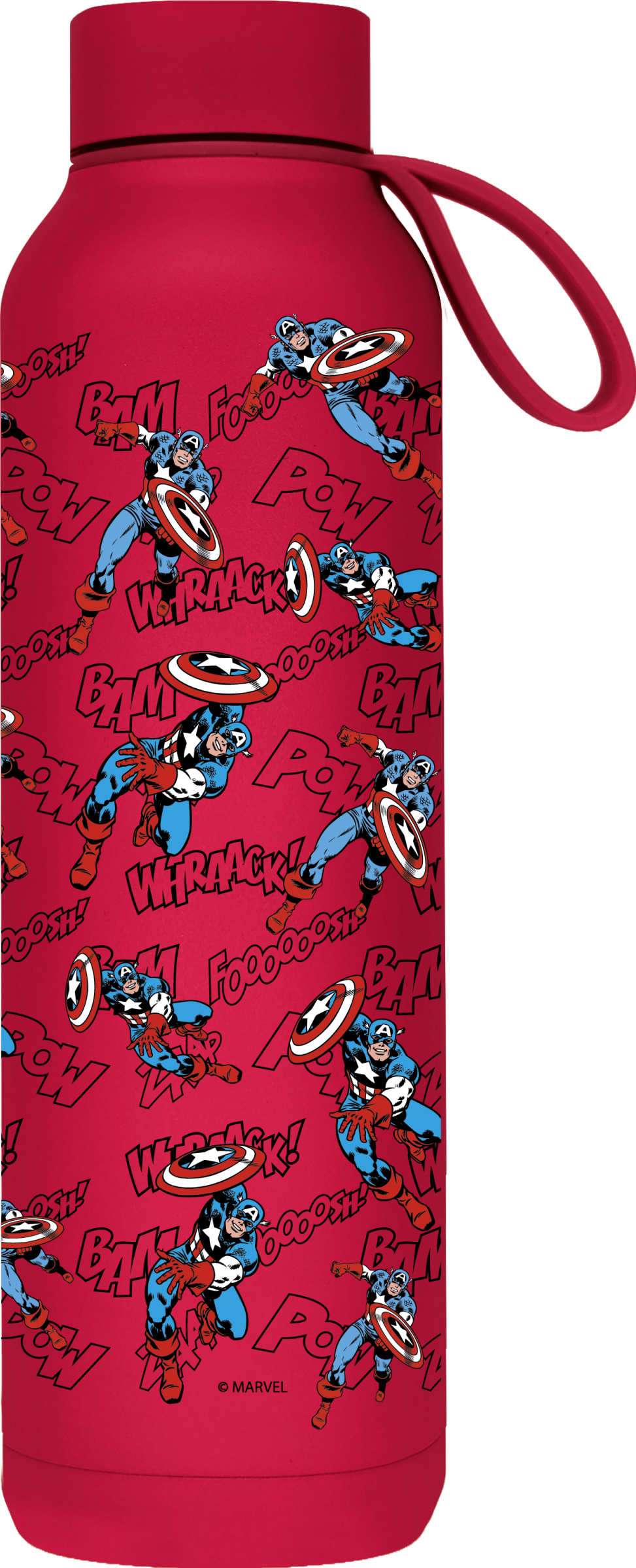 QUOKKA BOTELLA TERMO ACERO INOXIDABLE SOLID CON COLGADOR CHERRY RED 630 ML CAPTAIN AMERICA RETRO COMIC