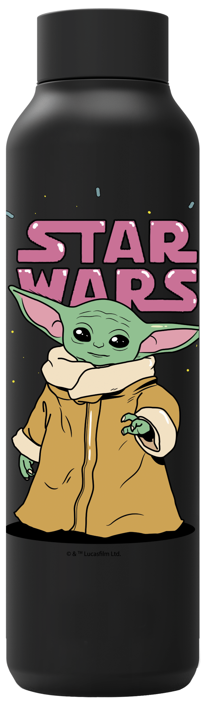 QUOKKA BOTELLA TERMO ACERO INOXIDABLE SOLID JET BLACK 630 ML THE MANDALORIAN GROGU NEON