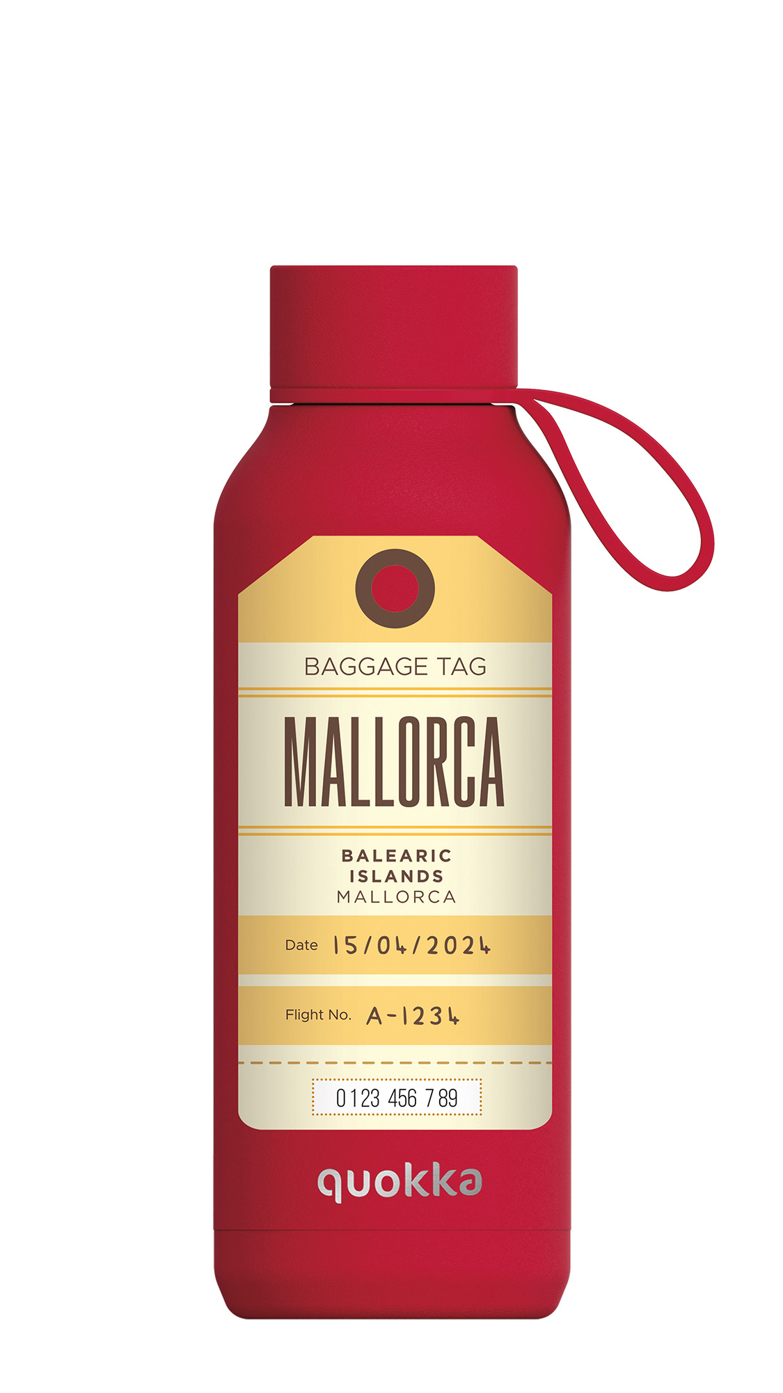 QUOKKA BOTELLA TERMO ACERO INOXIDABLE SOLID CON COLGADOR CHERRY RED 510 ML MALLORCA LABEL CUSTOM