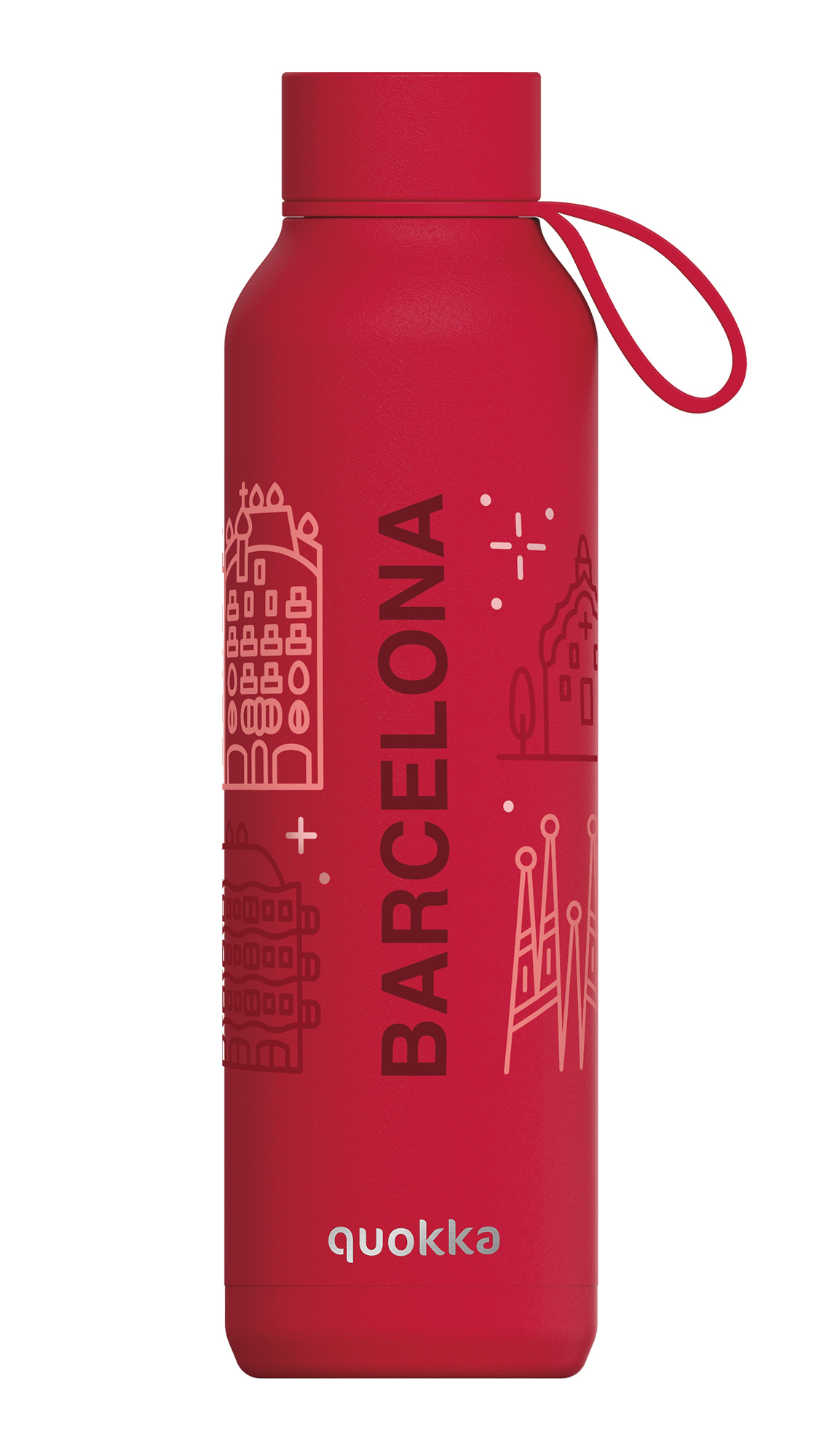 QUOKKA BOTELLA TERMO ACERO INOXIDABLE SOLID CON COLGADOR CHERRY RED 630 ML BARCELONA LOVE CUSTOM