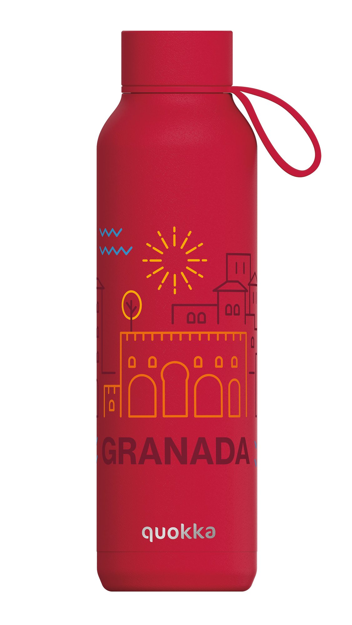 QUOKKA BOTELLA TERMO ACERO INOXIDABLE SOLID CON COLGADOR CHERRY RED 630 ML GRANADA LOVE CUSTOM